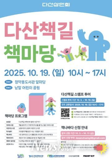 행사 현장에서는 다산책길 캐릭터 포토존과 상인회 홍보 부스를 비롯해 △독서 쉼터 △어린이도서관 △책나바다(교환·나눔) △책비티아이(독서 성향 검사) △컬러링 아트 등 다산책길 브랜드가 반영된 다양한 프로그램이 운영된다.