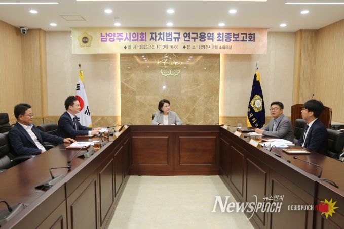 뉴스펀치 김길룡 기자 | 남양주시의회는 16일 남양주시의회 소회의실에서‘남양주시의회 자치법규 연구용역’최종보고회를 개최했다.