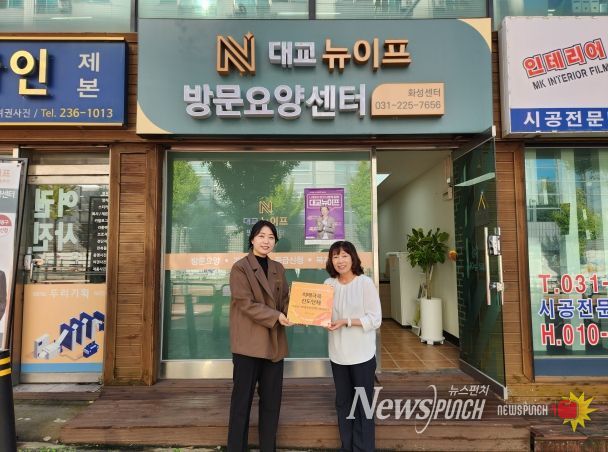 뉴스펀치 김길룡 기자 | 화성특례시가 16일 병점동 소재 대교뉴이프 방문요양센터 화성센터를 ‘치매극복 선도단체’로 신규 지정하고 현판 전달식을 가졌다.