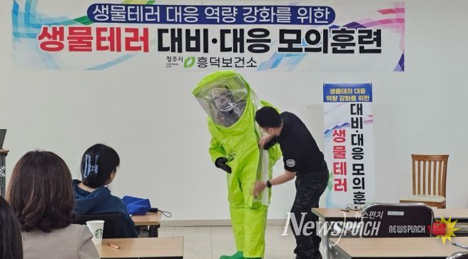 뉴스펀치 김길룡 기자 | 청주시 흥덕보건소는 16일 생물테러 발생 시 신속하고 체계적인 초등 대응 능력을 강화하기 위해, 보건소에서 대비·대응 소규모 모의훈련을 실시했다.