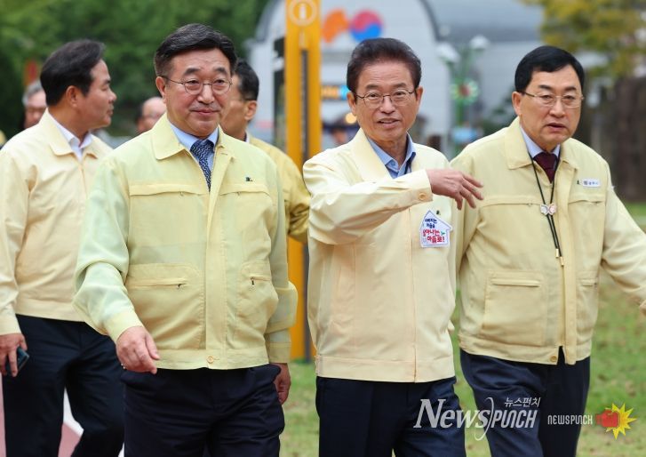 뉴스펀치 김길룡 기자 | 이철우 경상북도지사는 16일 아시아태평양경제협력체(APEC) 안전관리 현장점검을 위해 경주를 방문한 윤호중 행정안전부 장관과 함께 에이펙(APEC) 안전대책 현황을 보고받고, 정상회의장 등 주요 시설을 점검했다.