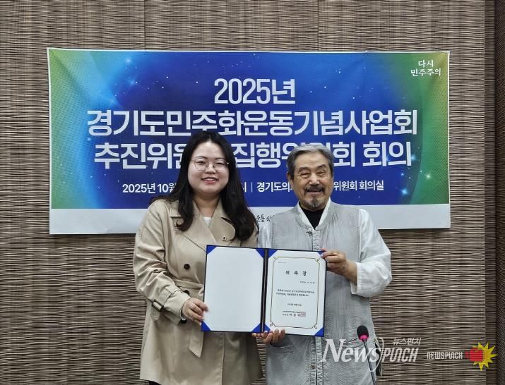 뉴스펀치 김길룡 기자 | 경기도의회 교육행정위원회 이자형 의원(더불어민주당, 비례)은 10월 16일 오후 2시 경기도의회 교육행정위원회 회의실에서 진행된 '2025년 경기도민주화운동 기념사업 추진현황 보고회'에서 자문위원으로 위촉됐다.