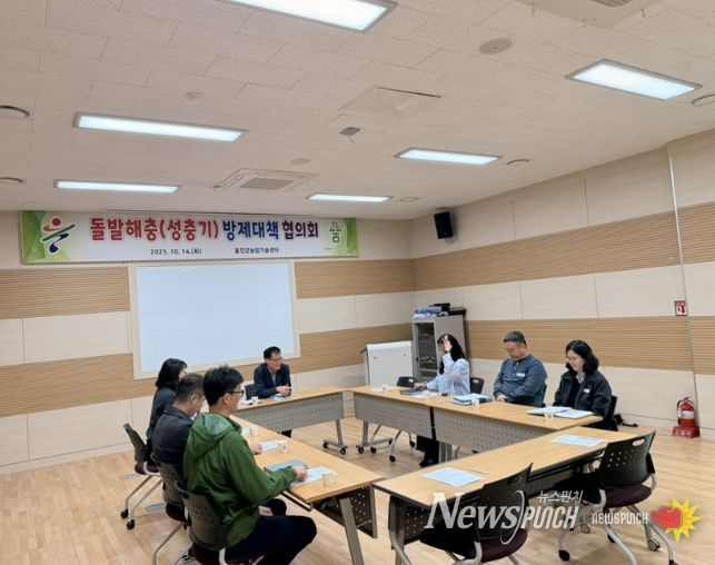 뉴스펀치 김길룡 기자 | 울진군은 지난 10월 14일 농업기술센터에서 성충기 돌발해충 방제대책 협의회를 개최하고 약충기 방제 성과 공유와 성충기 예찰 결과를 점검했다.