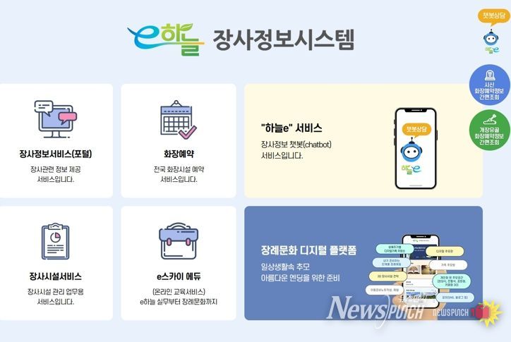 뉴스펀치 김길룡 기자 | 보건복지부 및 한국장례문화진흥원은 국가정보자원관리원 화재로 중단됐던 ‘e하늘장사정보시스템’ 운영이 10월 17일 0시부터 순차적으로 재개된다고 밝혔다.