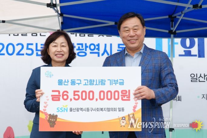 뉴스펀치 김길룡 기자 | 울산광역시동구사회복지협의회(회장 이경신)가 10월 18일 오후 3시 일산청년광장에서 열린 동구 사회복지박람회에서 김종훈 동구청장에게 고향사랑기부금 650만 원을 했다.