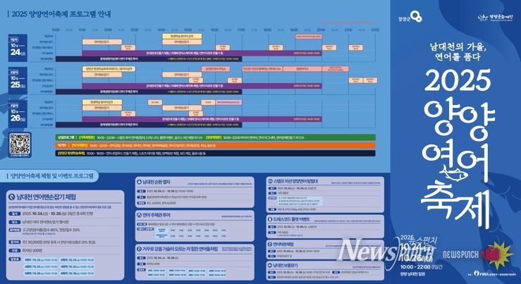 뉴스펀치 김길룡 기자 | 가을의 생명력과 생태의 순환을 주제로 한 ‘2025 양양연어축제’가 오는 10월 24일부터 26일까지 3일간 양양읍 남대천 둔치 일원에서 개최된다.