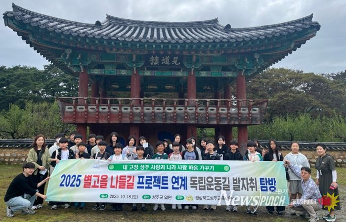 뉴스펀치 김길룡 기자 | 경상북도성주교육지원청은 2025년 10월 18일에 성주 관내 초,중학생 28명을 대상으로 성주군 일원에서『2025 별고을 나들길 프로젝트 연계 독립운동 발자취 탐방』프로그램을 실시했다.