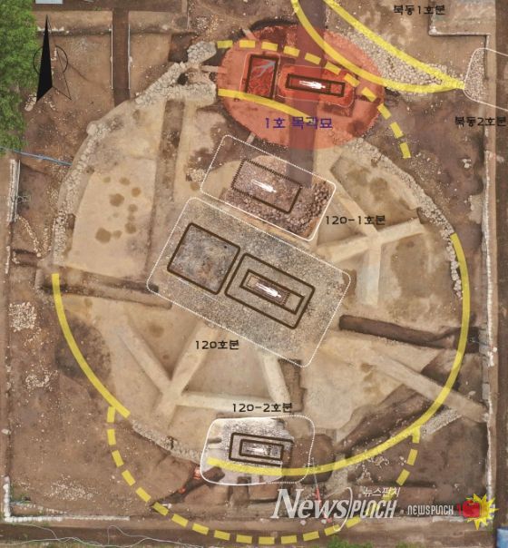 이번에 확인된 목곽묘는 적석목곽분인 120호분의 아래에서 발견되어 신라의 무덤 양식이 목곽묘에서 적석목곽분으로 변화하는 전환기적 요소를 명확하게 보여주는 귀중한 사례이다. 특히 목곽묘 내부에서는 신라에서 가장 오래된 것으로 추정되는 금동관의 일부가 확인되어 신라 지배층의 금속 공예 기술 연구에 새로운 지평을 열 것으로 기대된다.