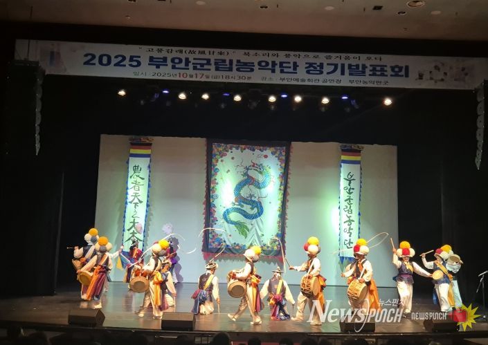 뉴스펀치 김길룡 기자 | 부안군립농악단은 지난 10월 17일 오후 6시 30분, 부안예술회관 2층 공연장에서 열린 2025년 부안군립농악단 정기발표회를 군민들의 큰 호응 속에 성황리에 마쳤다.