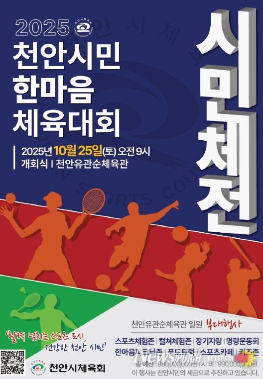 뉴스펀치 김길룡 기자 | 천안시체육회는 오는 25일 천안종합운동장 일원에서 ‘2025 천안시민한마음체육대회’를 개최한다.