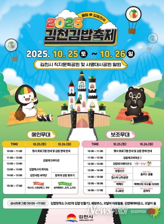 올해로 2회째를 맞은 『2025 김천김밥축제』는 10월 25일부터 26일까지 2일간 직지문화공원 및 사명대사공원 일원에서 개최된다.