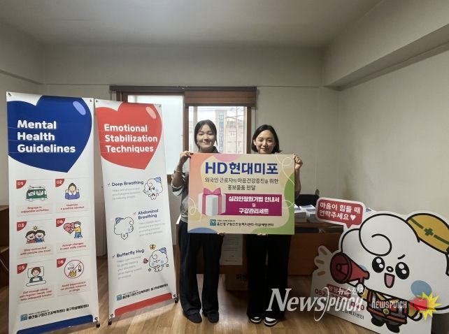 뉴스펀치 김길룡 기자 | 울산동구정신건강복지센터는 10월 20일 HD현대미포 외국인 근로자를 대상으로 정신건강 홍보 물품 2,000개를 전달했다.