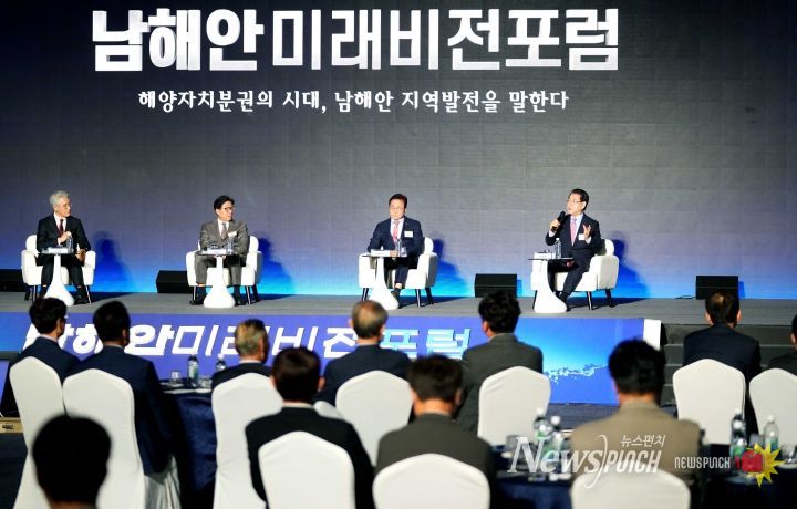 뉴스펀치 김길룡 기자 | 전라남도와 부산광역시, 경상남도는 20일 부산 벡스코 컨벤션홀에서 제3회 남해안 미래비전 포럼을 열어 해양자치분권시대 남해안 공동발전 전략을 논의했다.