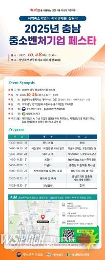 뉴스펀치 김길룡 기자 | (재)충남테크노파크(원장 서규석)는 도내 중소벤처기업의 혁신 성장과 상생 네트워크 강화를 위해 '2025 충남 중소벤처기업 페스타'를 28일 충남북부상공회의소 10층 대회의실에서 개최한다고 밝혔다.