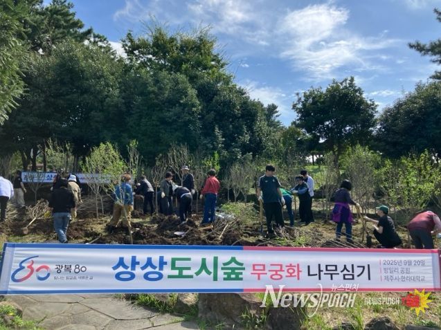 뉴스펀치 김길룡 기자 | 제주시는 10월 20일 신제주 방일리 공원에서 한라대학교와 함께 ‘상상도시숲’ 무궁화나무 심기 행사를 진행했다.