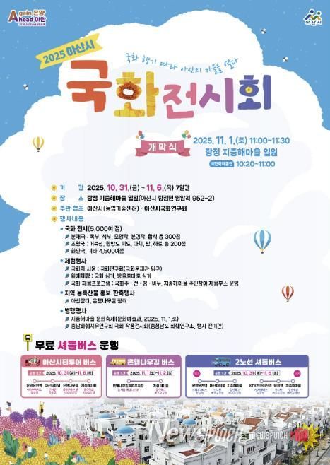 뉴스펀치 김길룡 기자 | 아산시는 깊어가는 가을 정취를 만끽할 수 있는 ‘2025년 아산시 국화전시회’를 오는 10월 31일부터 11월 6일까지 7일간 탕정면 지중해마을 일원에서 개최한다고 밝혔다.