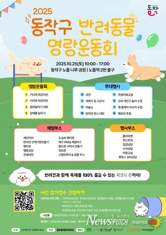 뉴스펀치 김완규 기자 | 동작구가 오는 25일 노들나루공원(노량진로 247)에서 ‘2025 반려동물 명랑운동회’를 개최한다고 밝혔다.