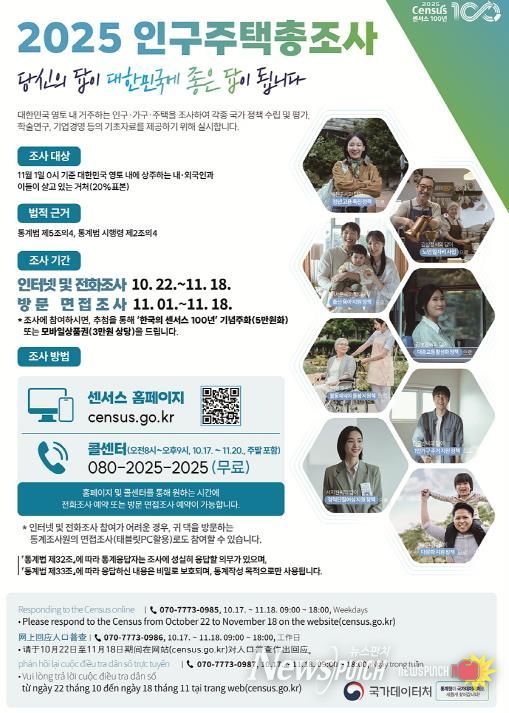 뉴스펀치 조평훈 기자 | 대구광역시는 10월 22일부터 11월 18일까지 국가데이터처(옛 통계청)가 주관하고 각 지자체가 실시하는 ‘2025 인구주택총조사’를 본격 추진한다.