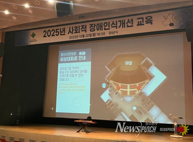 뉴스펀치 김길룡 기자 | 경산시는 20일 시민회관에서 직원 250여 명을 대상으로 올바른 장애인식과 장애 공감 문화를 조성하기 위한 ‘사회적 장애인식개선교육’을 실시했다.