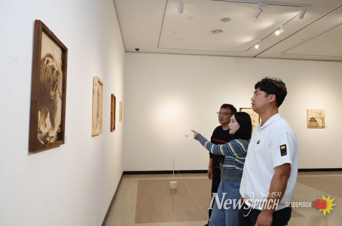 뉴스펀치 김길룡 기자 | 무주군이 다양한 전시회를 열어 가을 방문객들을 손짓하고 있다. 무주최북미술관에서는 오는 10월 30일까지 “빛과 나무의 대화-무주in 인두화 展”이 개최된다.