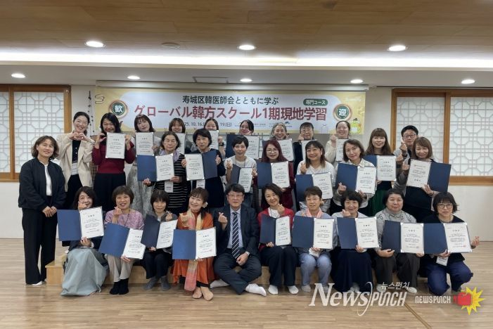 뉴스펀치 조평훈 기자 | 대구 수성문화재단(이사장 김대권)은 지난 9월 12일부터 시작하여 10월 19까지 진행된 글로벌 한방스쿨 1기 전문코스가 일본인 참가자 46명의 참여 속에 성공적으로 마무리됐다고 밝혔다.