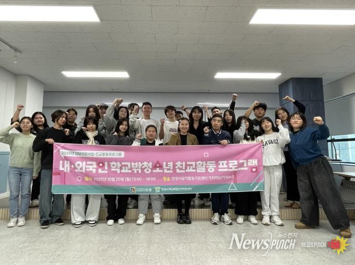 뉴스펀치 김길룡 기자 | 안성시학교밖청소년지원센터는 지난 10월 20일 안성공익활동지원센터 가치마당·가치누리에서 내·외국인 학교 밖 청소년이 함께 참여한 친교활동 프로그램을 성황리에 마무리했다.