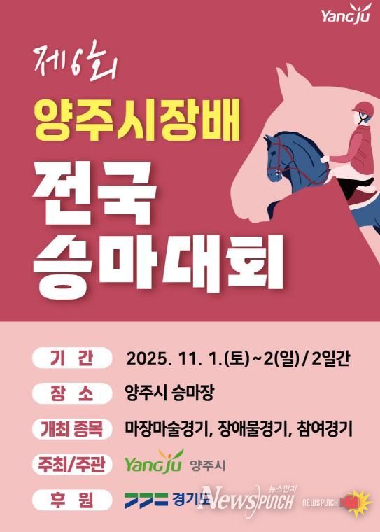 뉴스펀치 김길룡 기자 | 양주시가 오는 11월 1일부터 2일, 양주시 승마장에서 ‘2025 제6회 양주시장배 전국 승마대회’를 개최한다.