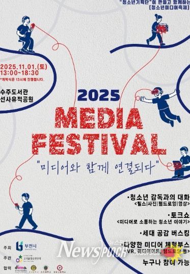 뉴스펀치 김길룡 기자 | 부천시와 고리울청소년센터가 주관하는 ‘2025 미디어 페스티벌’이 오는 11월 1일 오후 1시부터 6시까지 수주도서관과 선사유적공원에서 개최된다. 이번 축제는 청소년기획단이 주체가되어 직접 기획하고 준비하여 진행하며, ‘미디어와 함께 연결되다’를 주제로, 사람-사람, 사람-기술이 미디어를 통해 함께 소통하고 공감하는 장을 마련했다.
