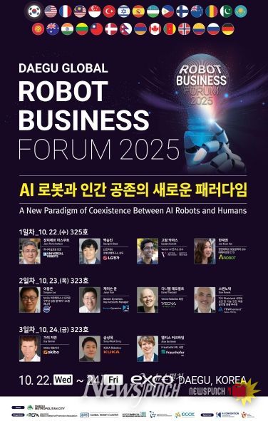 뉴스펀치 조평훈 기자 | 대구광역시는 ‘2025 미래혁신기술박람회(FIX 2025)’와 연계해 10월 22일부터 24일까지 3일간 엑스코 3층에서 ‘2025 대구 글로벌 로봇 비즈니스 포럼’을 개최한다.