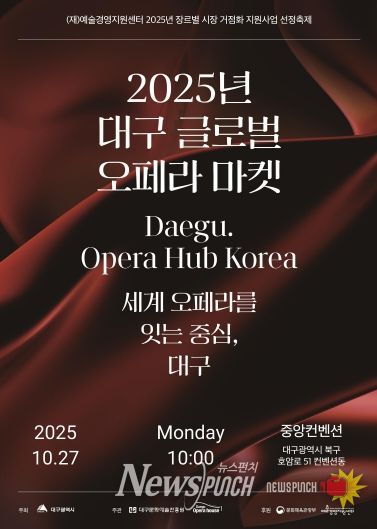 뉴스펀치 조평훈 기자 | (재)대구문화예술진흥원 대구오페라하우스는 문화체육관광부와 예술경영지원센터가 추진하는‘2025 장르별 시장 거점화 지원사업’에 선정돼, 오는 10월 27일 중앙컨벤션홀(대구 북구 호암로 51)에서 ‘2025 대구 글로벌 오페라 마켓’을 개최한다.