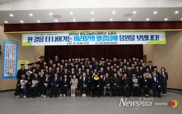 뉴스펀치 김길룡 기자 | 청도군은 10월 20일 청도군농업기술센터 대회의실에서 2025년 청도군농민사관학교 수료식을 개최했다.