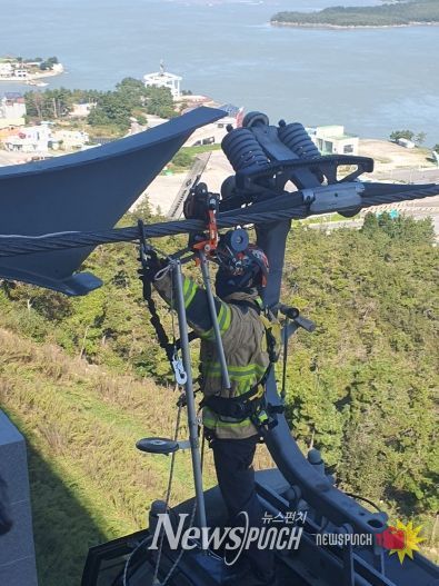 뉴스펀치 손석남 기자 | 진도소방서는 10월 20일 명량해상케이블카 진도스테이션에서 삭도시설 민관합동 구조훈련을 실시했다. 이번 훈련은 전국적으로 노후화가 진행 중인 관광용 삭도설비와 최근 증가하는 설치 현황에 대응하기 위해 마련됐다.