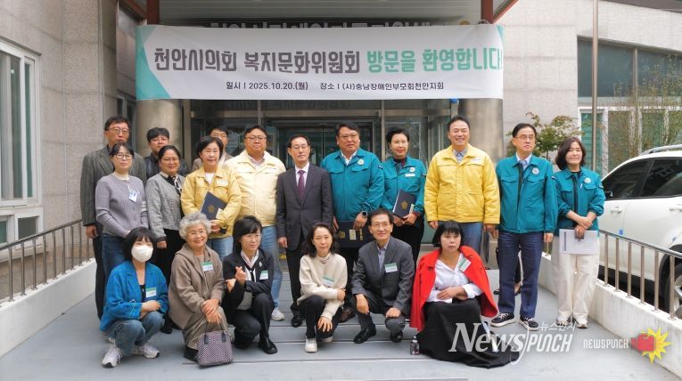뉴스펀치 김길룡 기자 | 천안시의회 복지문화위원회(위원장 이종만)는 제283회 임시회 기간 중인 지난 10월 20일, 주요 복지 및 체육시설 현장을 방문해 추진 실태를 점검하고 시민 의견을 청취했다.