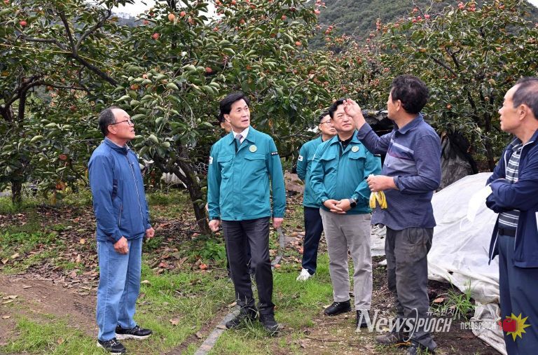 뉴스펀치 김길룡 기자 | 안병구 밀양시장은 21일 상동면 일원 떫은감 재배지를 방문해 최근 확산하고 있는 탄저병 피해 상황을 점검하고, 피해 임가의 애로사항을 청취했다고 밝혔다.