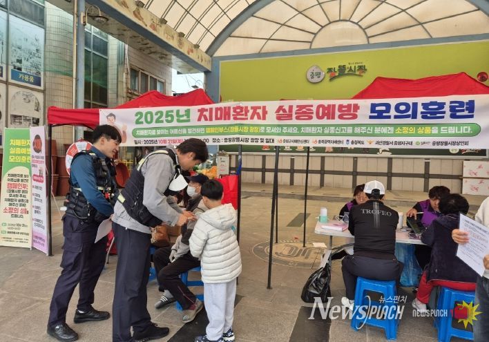 뉴스펀치 김길룡 기자 | 충북 증평군치매안심센터는 21일 증평장뜰시장 일대에서 치매환자 실종을 예방하고 신속 대응 역량을 높이기 위한 치매환자 실종 예방 모의 훈련을 실시했다.