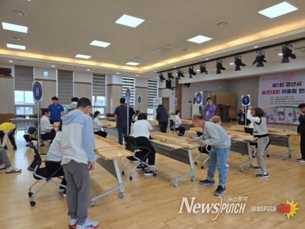 뉴스펀치 김길룡 기자 | 경산시평생교육지도자협의회는 20일 압량읍 행복발전소에서 어르신 및 장애인 등 150여 명이 참여한 '제1회 경산시 어르신 슐런 대회 어울림 한마당'을 개최했다.