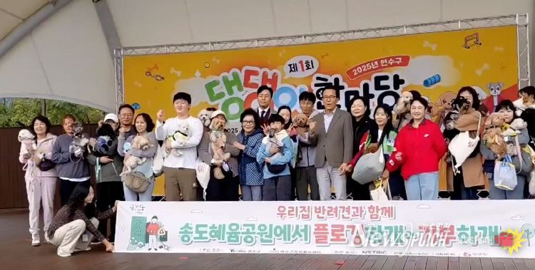 뉴스펀치 김길룡 기자 | 연수구자원봉사센터가 지난 10월 18일, 송도혜윰공원 반려견 놀이터에서 '우리집 반려견과 함께 플로깅하개~ 기부하개~' 행사를 성황리에 개최했다.