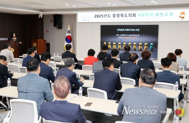 뉴스펀치 김길룡 기자 | 충북도의회는 21일 의회 다목적 회의실에서 의원 및 간부 공무원 등 50여 명을 대상으로 4대 폭력 예방교육을 실시했다.