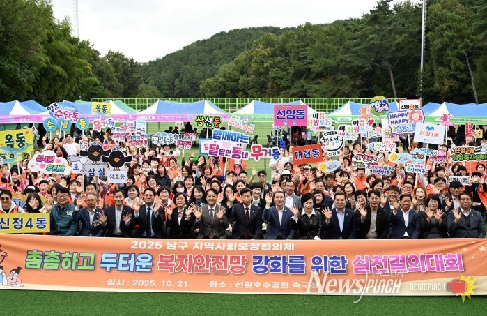 뉴스펀치 김길룡 기자 | 울산 남구는 21일 선암호수공원에서 ‘2025년 남구 지역사회보장협의체 실천결의대회’를 열고 복지 사각지대 없는 촘촘한 지역복지 실현을 위한 새로운 결의를 다졌다.