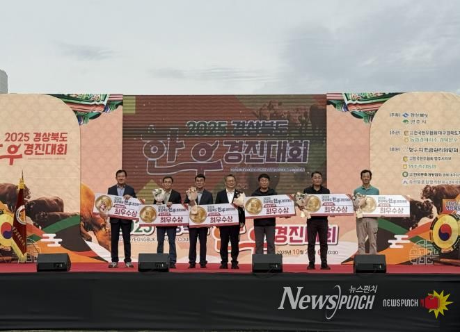 뉴스펀치 김길룡 기자 | 예천군은 21일, 영주시 문정둔치에서 열린 ‘2025년 경상북도 한우경진대회’에서 예천군 풍양면 김영휘 씨가 암송아지 부문 최우수상을 수상해 예천한우의 우수성을 널리 알렸다고 밝혔다.