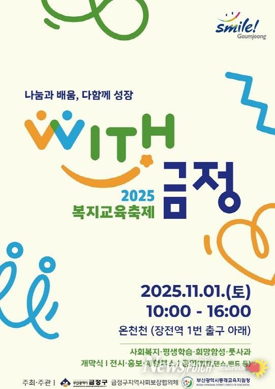뉴스펀치 김길룡 기자 | 부산시 금정구는 오는 11월 1일 온천천(도시철도 장전역 1번 출구 아래) 일원에서 ‘2025 복지교육축제 WITH금정’을 개최한다고 22일 밝혔다.