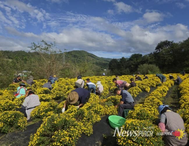 뉴스펀치 김길룡 기자 | 산청지역자활센터는 산청읍 일원에서 육묘사업단이 재배한 국화를 수확하고 있다고 22일 밝혔다.