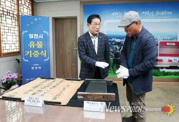 뉴스펀치 김길룡 기자 | 영천시는 21일과 22일 시청 시장실에서 유물 기증·기탁식을 개최했다고 밝혔다.