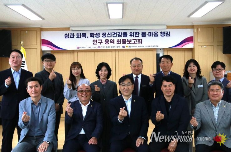 뉴스펀치 김길룡 기자 | 경북도의회 의원연구모임인'경상북도 학생 마음건강 교육 정책연구회'(대표 황두영 의원)는 10월 21일 구미시 도량동 행정복지센터에서 ‘쉼과 회복, 학생 정신건강을 위한 몸·마음 챙김 연구용역’ 최종보고회를 개최했다.