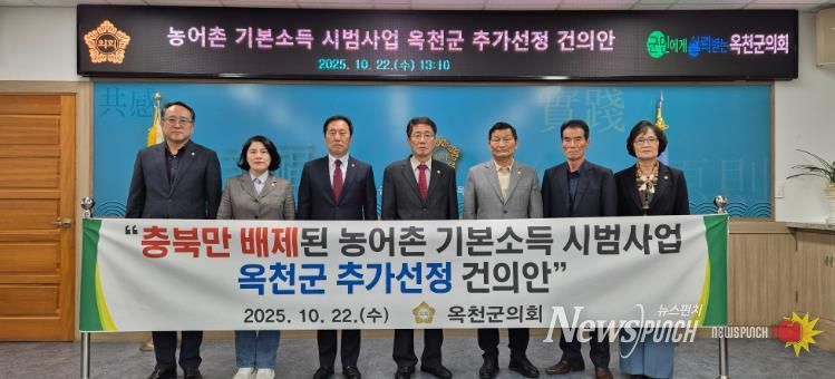 뉴스펀치 김길룡 기자 | 옥천군의회는 지난 10월 22일 의회 간담회실에서 추복성 의원이 대표발의한'농어촌 기본소득 시범사업'옥천군 추가선정 촉구 건의문을 채택했다고 밝혔다.