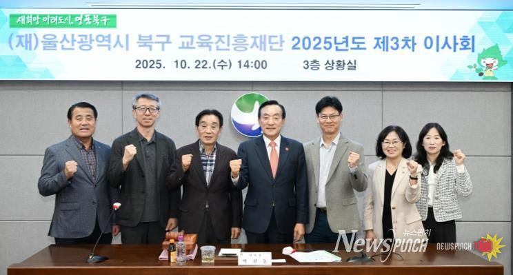 뉴스펀치 김길룡 기자 | 울산 북구교육진흥재단은 22일 북구청 상황실에서 제3차 이사회를 열고, 내년도 사업계획 및 예산(안)과 차오름 장학금 지원사업(안) 등을 심의·의결했다.