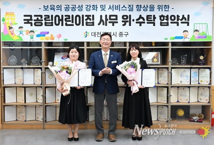 뉴스펀치 김길룡 기자 | 대전 중구는 22일 보육의 공공성 강화와 서비스 질 향상을 위해 관내 국공립어린이집 설치·운영 및 위·수탁 협약을 체결했다고 밝혔다.