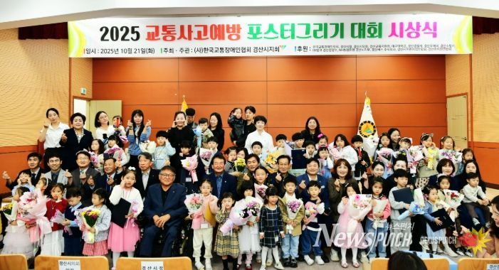 뉴스펀치 김길룡 기자 | 사)한국교통장애인협회 경산시지회(회장 송화자)는 21일 삼성현역사문화관에서 조현일 경산시장, 입상자와 가족 등 150여 명이 함께한 가운데 '2025년 교통사고 예방 포스터 그리기 대회 시상식'을 개최했다.