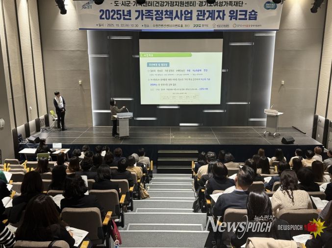 뉴스펀치 김길룡 기자 | 경기도는 22일 수원컨벤션센터 이벤트홀에서 도, 시군 공무원, 가족센터(건강가정지원센터) 및 경기도여성가족재단 관계자 등 100여 명이 참석한 가운데 ‘2025년 가족정책사업 관계자 워크숍’을 개최했다.