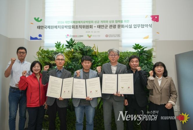 뉴스펀치 김길룡 기자 | 태안국제원예치유박람회조직위는 10월 22일, 천리포수목원, 안면도 쥬라기박물관과 함께 ‘2026태안국제원예치유박람회 통합입장권 운영’을 위한 업무협약(MOU)을 체결했다고 밝혔다.